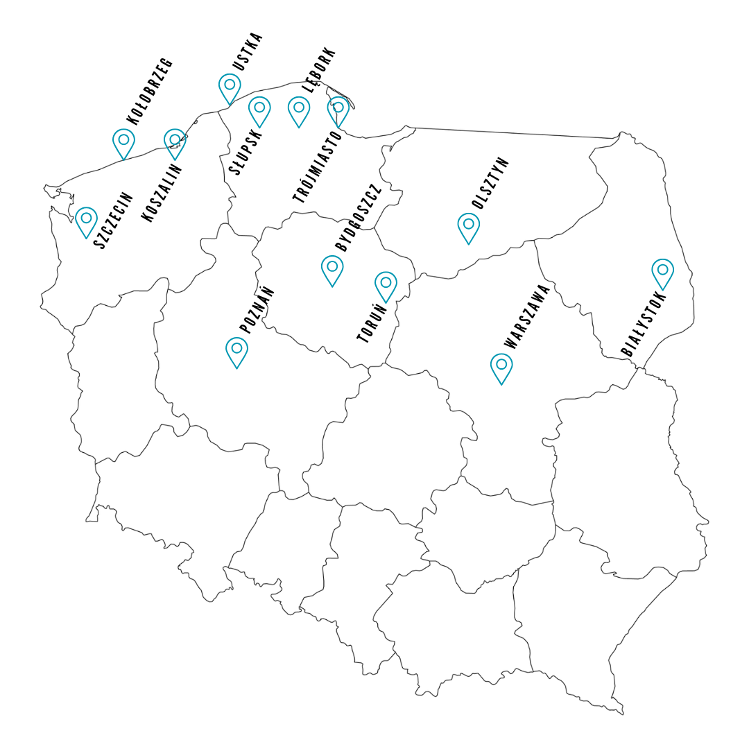 Ze względu na lokalizację siedziby firmy, obecnie szkolenia prowadzimy głównie na obszarze województwa pomorskiego i zachodnio-pomorskiego, jednak docelowo planujemy zwiększyć obszar naszych usług.